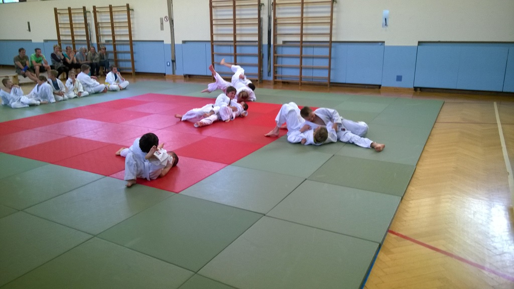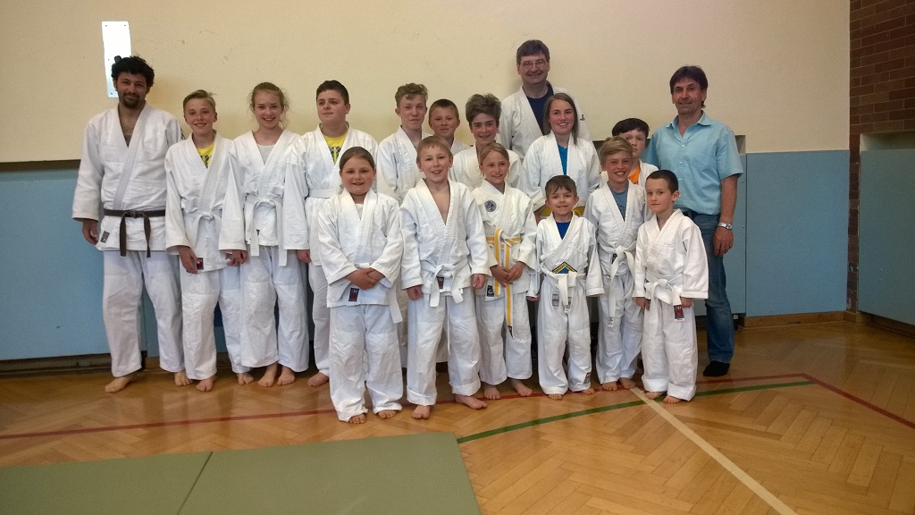 Gürtelprüfung Judo Mai 2016Die erste Gürtelprüfung in diesem Jahr fand im Mai statt. Der Prüfer Manfred Mertl aus Freilassing nahm 14 Kindern und Jugendlichen zwischen 7 und 19 Jahren die erste Gürtelprüfung zum weiß-gelben und zum gelben Gürtel ab. Die ausgiebiege Vorbereitung mit den beiden Trainern Florian Harant und Klaus Gottschalk hat sich gelohnt, alle haben ihre Prüfung bestanden.