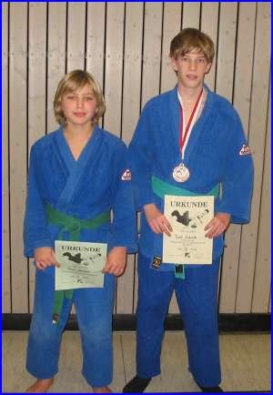 die sportlichen Trauben höher hängen. Im ersten Kampf traf der Mitterfeldener auf Dennis Hoffmann aus Gaimersheim, welcher nach einer Minute Kampfzeit mit einem Kopfüberwurf den Vergleich vorzeitig beendete. In der Trostrunde konnte Patrick Geigl mit enormem Kampfgeist seine aufsteigende Form unter Beweis stellen. Nach zwei Siegen stand Michael Kula, ein Blaugurtträger aus Moosburg, gegenüber: Zunächst ging Kula 2:0 in Führung, doch Geigl egalisierte den Rückstand und nach einem Festhalter ging er sogar als Sieger von der Matte. Als Trostrunden-Champion musste nun der TuSler erneut gegen Hoffmann um Platz 3 antreten. Richtig eingestellt und hochmotiviert glückte die Revanche mehr als deutlich. Mit 7:0 ließ er diesmal seinem Widersacher nicht den Hauch einer Chance und katapultierte sich damit noch auf den Bronzeplatz. Dies bedeutet für den Trainingsfleißigen die Teilnahme an der Südbayerischen Meisterschaft im niederbayerischen Abensberg - der größten deutschen Judohochburg. |