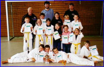 TuS-Judoka-Siege beim Bambini-TurnierFünf erste Plätze bringen deutlichen MannschaftserfolgDie Crew der Mitterfeldener TuS-Judoka konnten ihre letzten Mannschaftserfolge in Palling beim Landkreis-turnier und Vorjahressieg im Bambini-Turnier erneut bestätigen. Unter den zehn Mannschaften belegte der TuS mit 10 Punkten Vorsprung erneut den obersten Podestplatz. Der TuS trat mit elf Judoka der Altersklasse U11 (Jahrgang 1997 1995) an. Erste Ränge erkämpften sich (bis 26 kg) Ludwig Schneider nach starker Leistung im ersten Einzelturnier mit vier Siegen; (+ 40 kg) Teresa Adams mit klare Erfolge per Ippon; (- 40 kg) Martin Müller beherrschte seine Gewichtsklasse; (- 30) Timo Hänsch, routiniert bei seinen vier erfolgreichen Mattenduellen; (-36 kg) Daniel Mehr beherrschte die Technik und ließ durch Ippon keine Zweifel an seiner Stärke aufkommen. Zweite Plätze erreichten in ihren ersten Turnierein-sätzen nach Top-Kämpfen Nelli Baumgartner und Natalie Schwaiger. Ebenfalls Podestplätze 3. schafften in ihrem Turnier-Debüt Tanja Ammersdörfer (- 24 kg), Tobias Lapper (+ 40 kg) mit jeweils zwei Siege. Bronze gab`s auch für Michael Hagler (- 26 kg), der drei Siege verbuchte und nur gegen seinen Vereinskameraden Ludwig Schneider eine Niederlage einstecken musste. Mit einem Sieg sicherte sich Sebastian Gottschalk (bis 30 kg) die 7. Position in seiner Gewichtskategorie. Die am Wochenende eingesetzten Trainer Georg Raiger, Klaus Gotschalk und Karl Geigl konnten richtig stolz auf ihre Schützlinge sein und feierten im Anschluss in der Turnhalle mit den Saaldorfern ihren Erfolg. Die Einnahmen des Turniers stand unter dem Motto Judoka-Kinder helfen Flut-Kindern in Sri Lanka". Die Tabelle: 1. Mitterfelden, 2. Lenggries, 3. Waging, 4. Waging, 5.