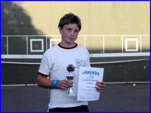 KnabenBei den Knaben waren lediglich 2 Teilnehmer gemeldet, so dass in einem Spiel der Clubmeister ermittelt wurde. Nach hartem Kampf konnte sich Florian Dusch durch einen 6:4, 5:7, 6:3 gegen Tobias Kantner behaupten und somit seinen ersten Clubmeistertitel einfahren. |